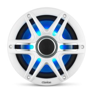 These Clarion Marine waterproof marine speakers deliver quality sound. They are designed with materials resistant to marine environments.